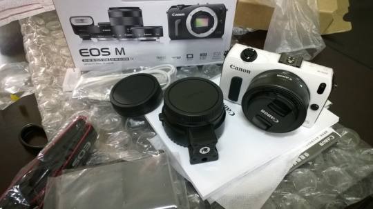 昨天无意看到某宝的EOSM套机(22/2)价2020元,转接环才280元,毫不犹豫地拍下了,今早到货,开箱,惊喜啊,竟然可以像手机那样触摸屏对焦拍摄,非常便利,更难能可贵的是使死马那支僵尸镜头复活,原来在单反上跑焦跑到一塌糊涂的,在EOSM上却能精确对焦,而且对焦速度不比22/2差,这令我惊喜万分啊。先上开箱图。