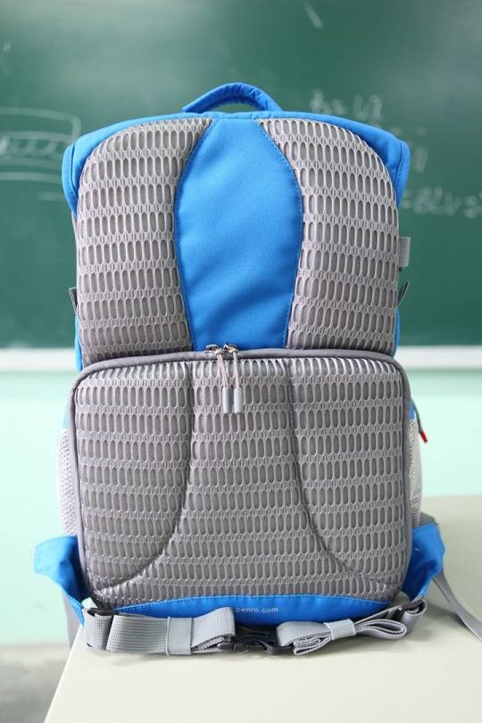 同样,后背设计同样采用了蜂窝状网布设计,符合人体工程学设计原理,笔者背负起来感觉透气性不错,十分适合外出旅游时使用,通风散热性好,上下仓开口均采用背开式防盗设计增加安全保障。