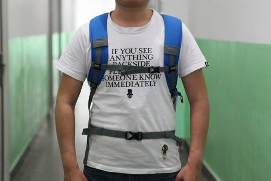 此款背包内部装载采用了上下分离式设计,背部上层拉锁同样是YKK拉锁。