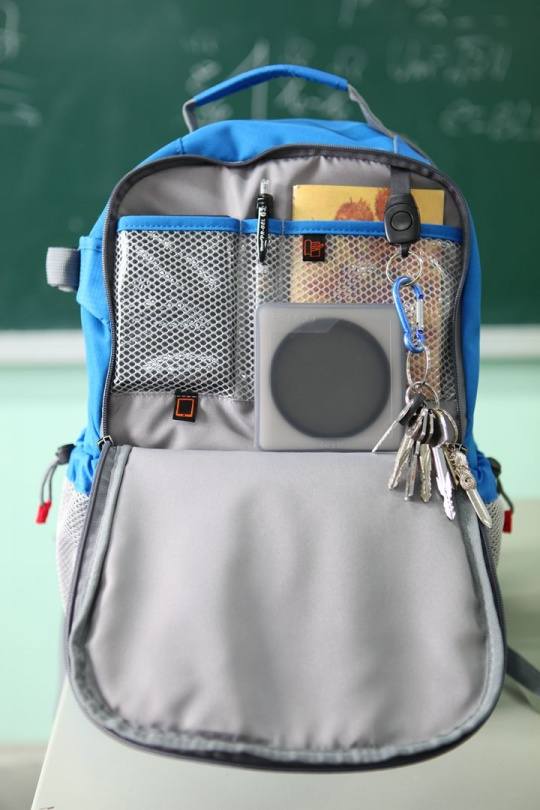 了解完了此款背包的外观后,我们再来看下背包背后的装载能力吧!打开背包的外层口袋我们可以装载日常拍摄的附件工具,像移动硬盘、笔记本、滤镜、笔、钥匙、iPAD等物件都可以装入其中。