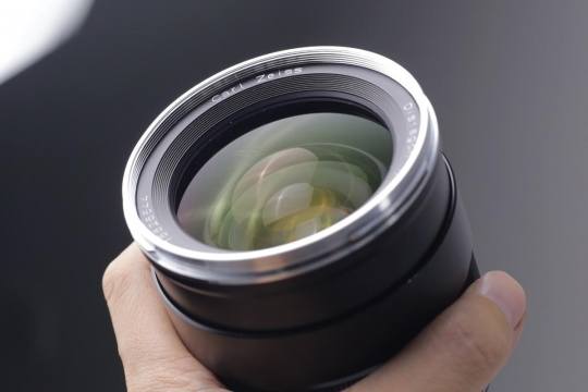 代表高品质的红T*镀膜,在灯光下呈现出湖绿色,十分漂亮。得益于该镀膜,镜头的眩光控制能力十分之强。