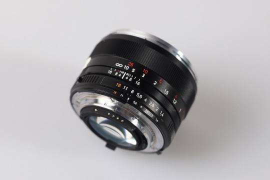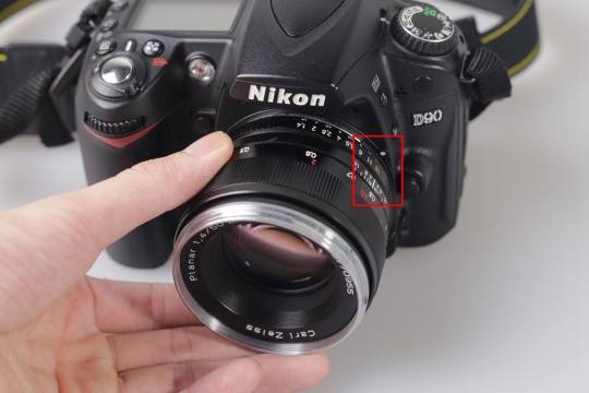这次的两个蔡司镜头都是ZF.2尼康F接口,镜头上的光圈环无法在尼康数码机身上使用,但是可以从尼康机身实时控制光圈,具体方法为现将光圈环调至最小光圈,如下图:
