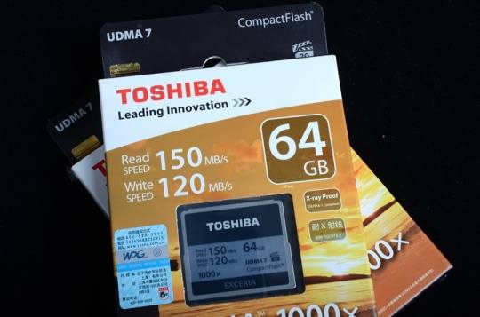 笔者这次拿到了东芝最新的专业级-极至瞬速CF存储卡 EXCERIA™ 系列64GB和128GB CF卡。这个系列的产品最大传输达到1000X倍速,而卡数据接口也是最顶级的UDMA 7。官方给出的理论速度为读取150MB/s,而写入也有惊人的120MB/s。这个读写速度应对主流的相机都没有问题,也可以直接应用于专业的高清摄像机使用。