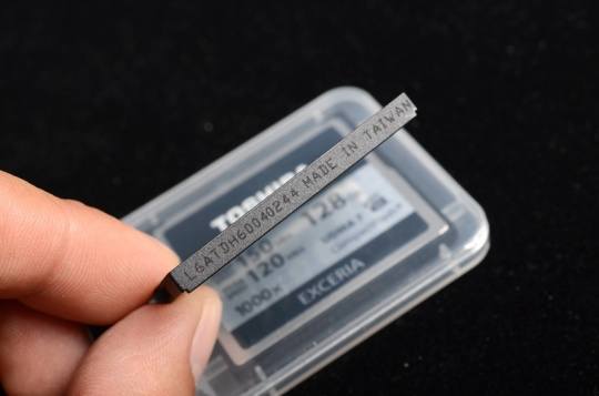 在存储卡的边框处则有该卡的产品编号和产地,可以看到 EXCERIA™ 系列CF卡是中国台湾生产的。