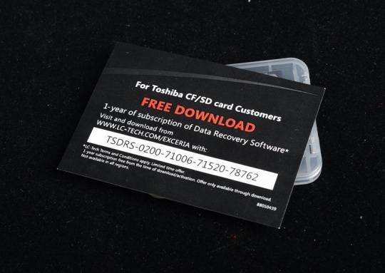 这款CF卡还随机赠给用户一个恢复数据软件,用户可以使用卡片上的注册码进行下载安装数据恢复软件,以防不测。从这点也可以看出东芝