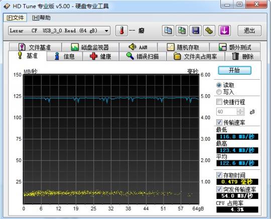 最后我们使用HD Tune进行了测速,这款软件针对的是存储卡的读取测试。通过向存储卡内进行超大数据量的传输来进行测试,可以说是非常有代表性的。通过测试,笔者发现即使短时间进行超大数据的备份,它依然可以得到平均122MB/s的读取速度。这也是难能可贵的。在向任何电脑或者移动设备输出时确保了流畅度。