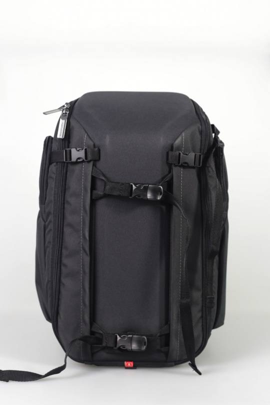 BP50外形接近长方体,整体为黑色,细节处辅以红色。外部尺寸54×28.6×21.4cm,重2.4kg。该款摄影包主要针对摄影师以及摄影发烧友,主打优秀的防护功能。