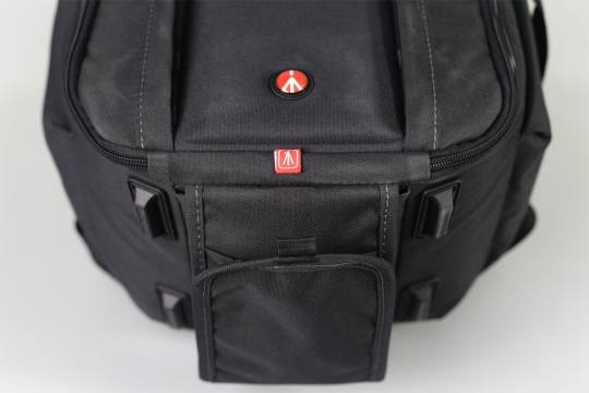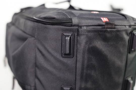 正面的拉链镌刻有曼富图英文字样。可能是由于正面护板把防水设计设置在了包内,导致拉链拉动是不是非常的顺畅。