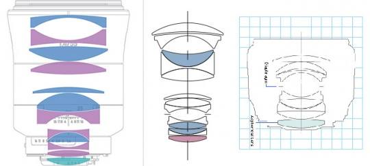 镜头结构上,佳能是传统的双高斯结构,而蔡司和适马采用复杂的反望结构。