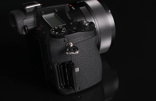 RX10右侧是相机的存储卡空间,可以使用一张SD存储卡。RX10理所当然的支持高速SDXC卡片进行数据存储,不论是拍摄照片还是视频都有一个高速保证。RX10是一台支持NFC的相机,相机右侧专门用N标识了NFC感应的区域,用户只需要把同样支持NFC的移动设备与RX10接触一下就可以通过软件进行遥控拍摄和照片传送了。