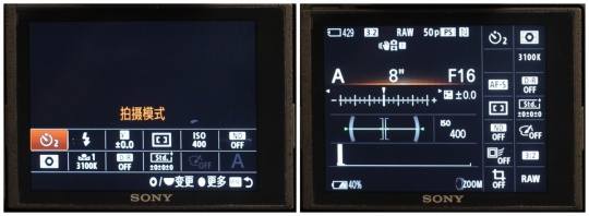 RX10除了主菜单之外,还设计了一个目前大多数相机都有的快捷菜单。快捷菜单顾名思义就是专门为了可以迅速改变一些拍摄核心参数的,比如测光,ISO,色彩模式等。RX10只需要在拍摄状态下按Fn就可以进入快捷菜单,使用转盘的四个方向选择需要调整的内容,然后直接转动拨盘就可以改变参数,能够快速设定从而不错过精彩的拍摄瞬间。该菜单共有12种可选项,当用户使用DISP改变显示方式后,还可以进一步增加可调数量。值得注意的是,在相机主菜单里的自定义部分里还可以对快捷菜单的选项做调整,摄影师可以根据自己的拍摄习惯,把认为最常用的选项设置到快捷菜单里,这也是非常人性化的。