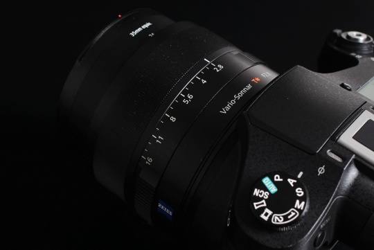 在镜头的左侧印有蔡司的蓝色标志,这支镜头整体采用了高档的金属拉丝工艺,突出了专业和高级性。在镜头的中部是宽大的变焦环,这也是为了单反用户的习惯而设置的,在用户使用EVF取景时,就可以像使用单反相机一样手动进行调焦。