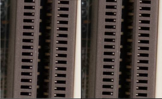 我们依然是截取测试图中红框部分进行放大,拍摄RAW进行后期输出,为了就是最大程度的再现镜头锐度。