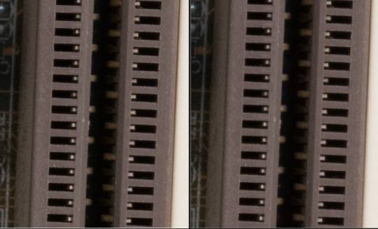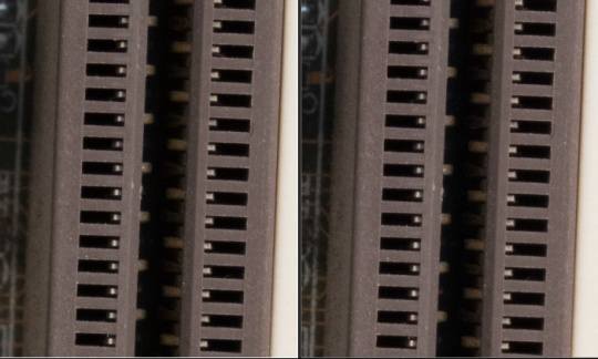 从图上看RX10的抗紫边特别优秀。即使在F2.8光圈的情况下也几乎看不出任何的紫边,当然把光圈逐渐收缩后就可以用完美来形容了。有了这样的抗紫边表现,用户可以在各种强光环境下使用大光圈拍摄,后期进行放大输出也不会有什么问题。