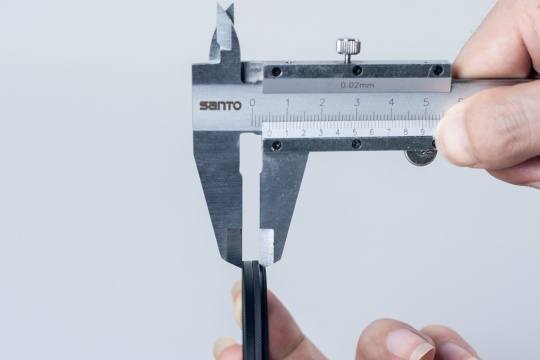 滤镜边框的厚度是比较重要的细节,决定着滤镜用在广角镜头时画面会否出现暗角现象。通过卡尺的测量,ELITE MRC CPL的厚度在5mm,虽然并非小编测试过最薄的CPL,但再稍后的样片中我们会看到是否出现暗角的情况。另外,ELITE MRC CPL的边框选用铜材,与铝材相比,铜的摩擦系数很小,而摩擦系数越小滤镜对镜头边框的损耗就越小,而且装卸更容易;而且从材料的力学性能来说,铝的抗拉强度与硬度都比铜质要低,所以作为C&C最高级别滤镜产品,铜材边框是必然的选择。