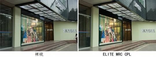 用1:1放大截图来观察装上ELITE MRC CPL后细节画质区别,对比效果十分明显,消除镜面反光后橱窗内真实色彩的到还原,而且画质上的损失基本可以忽略,偏色也在可接受范围之内。