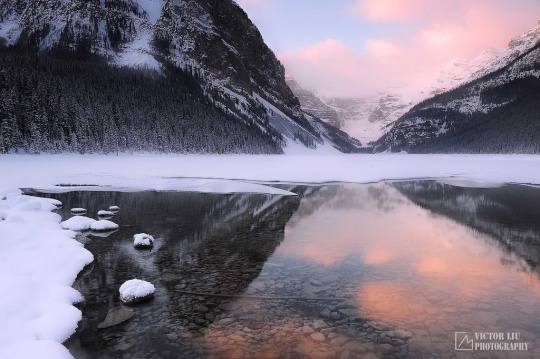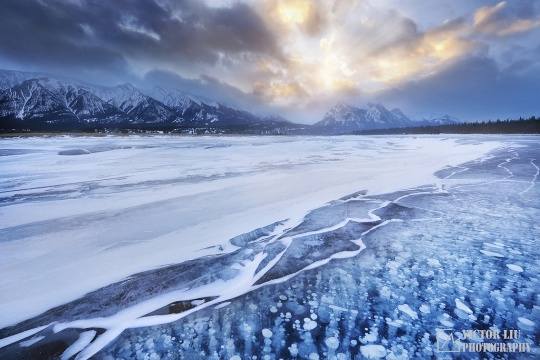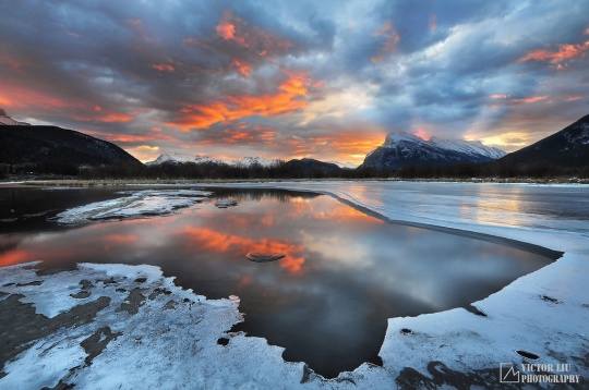 班夫国家公园的朱砂湖可能是整个落基山最旺的摄影地,特别是在冬天,在五彩斑斓的天空下面冰雪和水交融在一起,格外耀眼。我不记得我来过这个湖有多少次,也不记得我从这个湖拍过多少张成功的片子,但是坦率的说,每次我来到朱砂湖,我都能捕捉到从未见到过的画面。