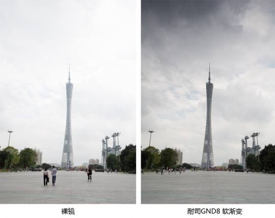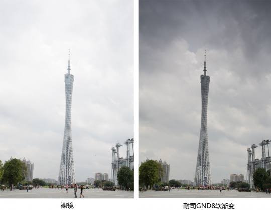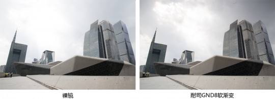 下面我们通过第三组的照片进行拼接,并放大细节来对裸镜与耐司GND8软渐变进行对比:
