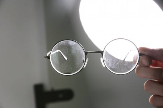 擦拭前,真的很脏啊!于是我们再次仿照上面的方法,擦拭眼镜的镜片。