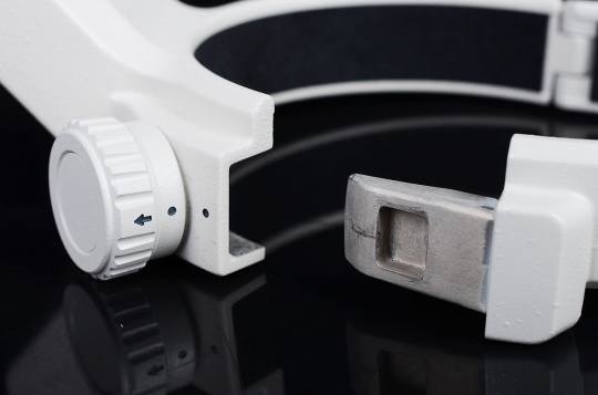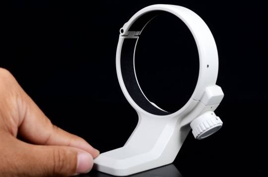 在众多的脚架接环中,索尼自家的还是比较方便的。它整体分为两个阶段,第一个是分离情况下的摁扣式设计,用户只需要把脚架环放在镜头相应位置,简单一按就可以先一步作出固定,此时用户可以调节横竖构图。确定构图后,再通过旋钮加紧防止机身晃动。在脚架环的内部,索尼加入了一层绒布,这样可以在拆装时可以避免镜身出现刮伤的情形。