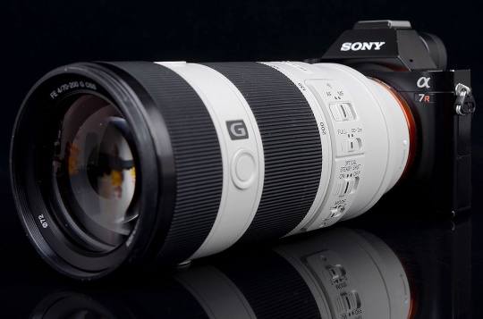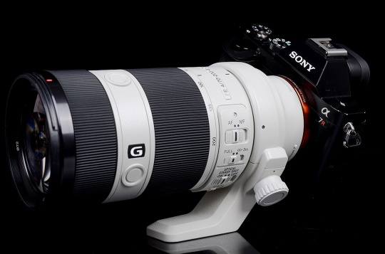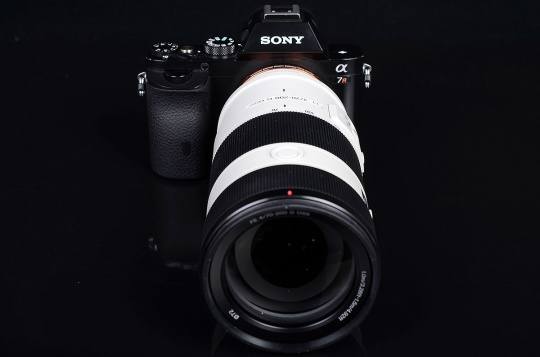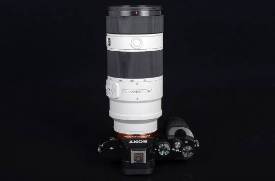 索尼70-200mm F4镜头+α7R侧面(点击放大)