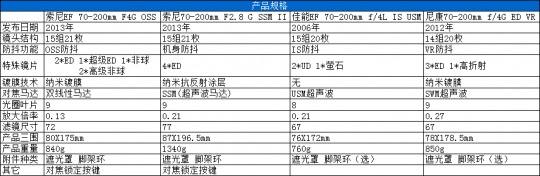为了让大家很清楚的看到各家的70-200mm镜头表现,笔者横向的列出了索尼自家以及佳能、尼康的产品参数。从上表中我们可以看到,镜头结构大同小异(笔者记忆中N年前就是这种现状),特殊镜片使用方面索尼绝对的用料十足,镜头的重量以及体积并没有想象的小,不过机动性方面也没有太大影响,类似于佳能的爱死小小白。最后,索尼的对焦锁定功能也是毫无保留的加入,方便大家在捕捉运动物体或对焦后的构图调整。