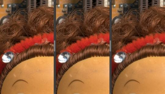 首先,笔者上图是70mm各级光圈画质的比较,基本上中央画质从F5.6开始就已经非常锐利了,被拍摄的娃娃从发丝到发卡的细节都被完好保留。这样峰值的锐度表现一直持续到F16,此间的各当光圈都有非常优异的表现能力。但是F22和F4的表现基本相同,整体看起来有些下降,这样的情况我们从之前的MTF曲线也可以遇见,还是在接受范围之内。