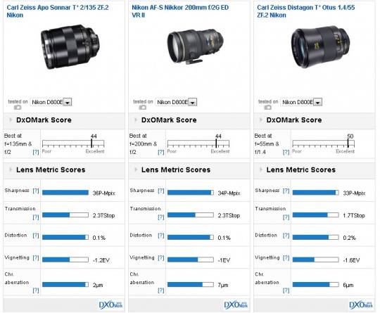 通过多款牛头测试,我们可以选出三支镜头与D800E搭配可发挥其最高锐度。 Zeiss Otus 1,4/55 、 Zeiss Apo Sonnar 135mm F2和Nikkor 200mm f2。那么D800E的镜头表现与其他品牌机身相比又是如何呢?