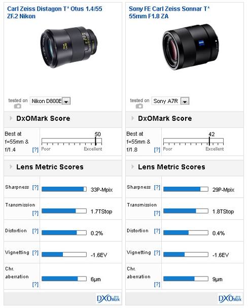 由于卡口不同,如果不考虑转接,尼康D800E可以支持Zeiss Otus 1,4/55,而索尼α7R搭配自家Sony Zeiss 55mm f1.8 ZA。这样比较对索尼系统有失公允,但不可否认与“最佳组合”比较,索尼的组合并没有差多少,价格、体积/重量、自动对焦还有优势。