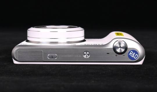 机身顶部的设计中,三星GALAXY Camera 2采用了金属拉丝风格设计,与快门按键结合的非常好,同样也只有闪光灯弹起按钮、开关机按键和快门按键,此次我们拿到的仅是工程样机,因此在细节设计上可能会与最终的零售版会有微小差别。