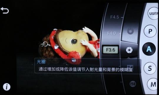 参数的选择方面,仍旧采用滑动选择的方式,当停留在图标上的时候,相机会显示出图标的注解,如上图显示,这个可以帮助新人快速了解图标是干什么的,以及基本的摄影知识。
