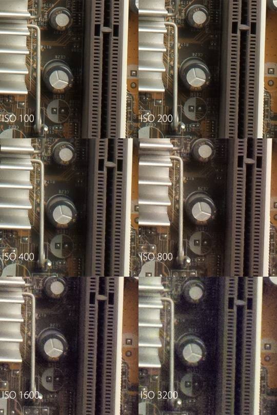 三星GALAXY Camera 2的感光度范围为ISO 100-ISO3200,与上一代没有变化,从上图可以看出, 三星GALAXY Camera 2从ISO 800开始可以看到一些涂抹计算的痕迹,之前的ISO100-400画面表现虽然不那么锐利,但是还是很干净的,到了ISO1600和ISO 3200,画面噪点和涂抹都已经非常的明显,不建议使用这两档进行拍摄。