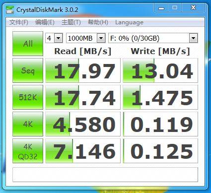 以下的测试中笔者使用了Disk Speed Test、CrystalDiskMark3.0.2两款软件进行了测试。