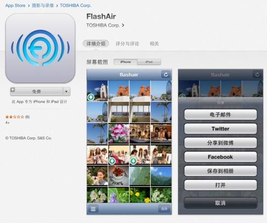在使用FlashAir存储卡之前,你 需要在你的智能手机中下载对应的APP软件: