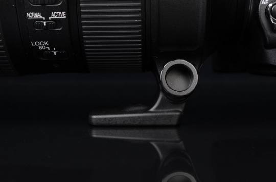 与这支镜头搭配的还有一个黑色莲花瓣遮光罩。此遮光罩的内表面采用哑光处理(没有植绒),通过侧面按钮可轻松装卸。