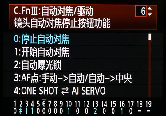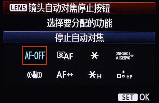 自动对焦停止键是可以通过机身自定义的,如果不使用镜头上的按钮(手持使用按钮位于镜头前端比较难按),我们可以将该功能自定义到机身背面的AF-ON按钮上。另外在EOS-1DX机身内可以自定义镜头上自动对焦停止键:AF-OFF(停止自动对焦)、测光和自动对焦启动、自动曝光锁、单次自动对焦和人工智能伺服切换、开启ISO防抖、切换到已注册自动对焦功能、自动曝光锁(保持)、切换到已注册的自动对焦点。