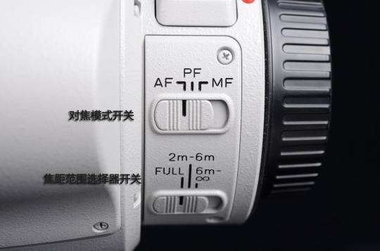 至于对焦距离的切换,可以使用开关设置焦距范围。设置适当的焦距范围可以缩短实际的自动对焦时间。比如拍摄远距离的物体,就没必要设成FULL(全程2m-无穷远),可设为6m-无穷远,缩短对焦行程,提高对焦速度。