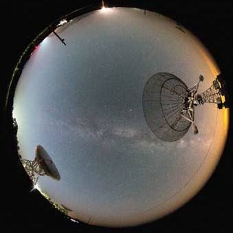 全天景色尽收镜中。贯穿整个天空的银河是夜空中永远的主角,如果使用普通镜头是无法将整条银河全部收入画中的。即使是14mm的镜头,也只能达到114˚的视角,无法在一张图片中收纳整条银河。佳能EF 8-15mm f/4LUSM鱼眼这支镜头则可以轻松完成这个任务,银河以及地面的射电望远镜全部被纳入画面当中,给人一种特别强的冲击感。