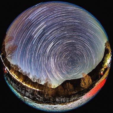 星空的指纹。星轨是星空拍摄中常见的项目之一,只要找到北极星的方向,通过一定时间长度的曝光或是叠加,即可拍到恒星运动的轨迹。在8mm端的圆周鱼眼下,这种画面别有一番韵味,就犹如指纹和树木的年轮般奇妙。