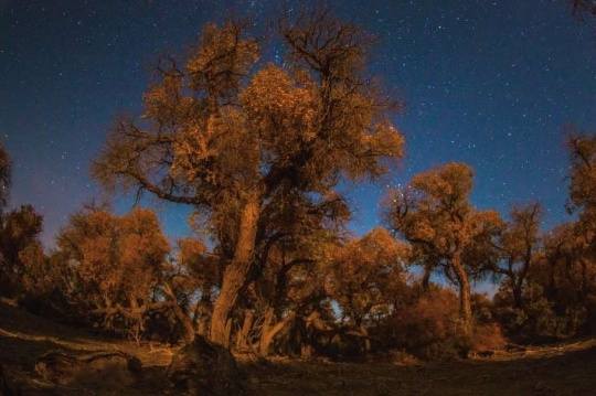 包容万物的魅力。因为佳能EF 8-15mm f/4L USM鱼眼这支镜头的对焦行程较短,加上最大光圈为F4,基本上3m之外的景物就处于无限远合焦状态,可以利用这一点拍摄一些兼顾地景和星空的照片。比如在这张照片中,我将被月光照亮的胡杨林放在了画面中间作为主体,而前景的枯树和背景的星空均清晰可见。