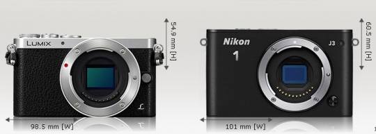 真可谓“不比不知道一比吓一跳”,松下DMC-GM1做的非常小巧,背面尺寸与编辑名片相仿,即便是传感器比它小的三款相机,也没有占到任何便宜。松下这次真的是领会到M4/3的精髓,做到“卡片之薄,单反之用”。