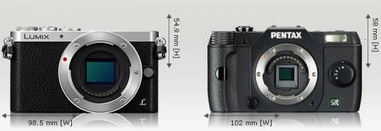 那么松下DMC-GM1到底有多小呢?其机身尺寸为98.5×54.9×30.4mm,单纯看数据并不够直观,我们将它与Nikon 1J3、索尼RX100、宾得Q7外观作比较。