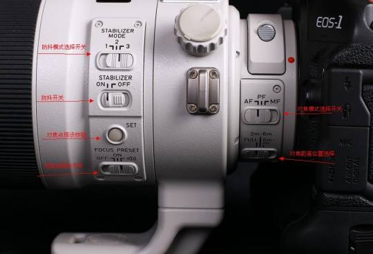 在镜头的最前端设置了4个自动对焦停止钮,在默认设置下,摄影师可以很方便的停止对焦锁定焦点拍摄