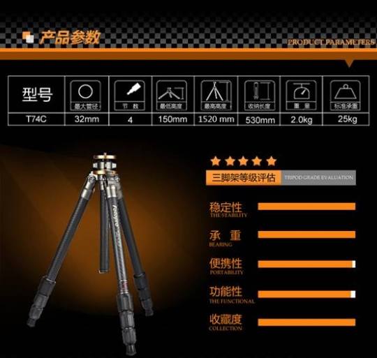 实际上,可以看见富图宝的磐图T-74C还是处于比较适中的位置,既兼顾了稳定性又注重了便携性,而且外观更讨好眼球