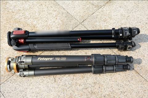 笔者手中有三个脚架:左到右依次是:普及型铝合金脚架,富图宝磐图T-74C,某大型190脚架。户外对照如图