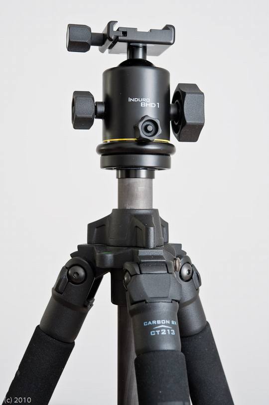 笔者拿到一款CT213碳纤维三脚架和BHD1球形云台进行测试,打开纸箱后我们看到一个做工精美的脚架包并带有背带。这种细致的考虑让用户在户外旅行时可以很好地保护脚架和云台,而即使其他著名欧洲脚架品牌也没有提供量身定做的脚架包,而且还要另外购买。