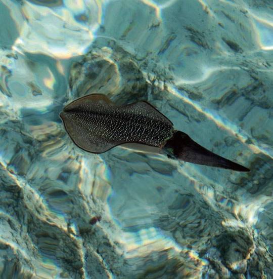 马尔代夫,阳光,海水,不期而遇的小精灵。在这样一个画面中,穿梭的海洋生物仿佛凝固在水中,而水波的局部呈现出七彩的衍射,成为跃动的背景。为了更多地表现水波的细节,我将光圈缩小到f/10,以获得更大的景深。