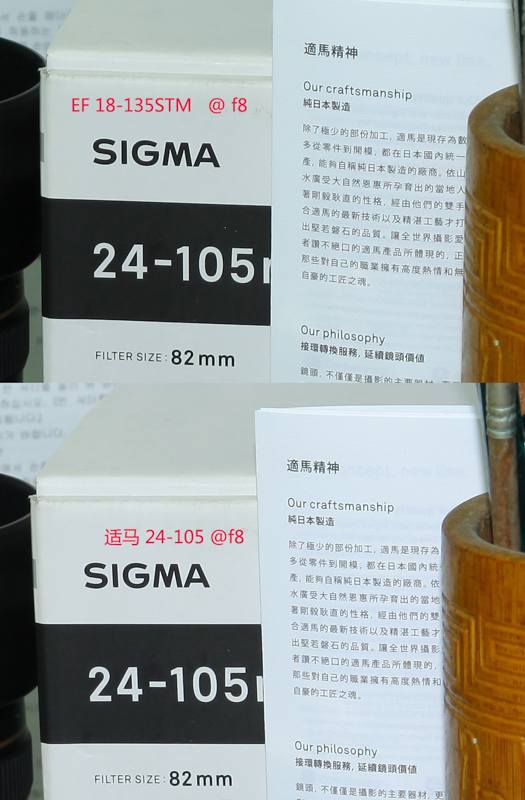 适马 DG 24-105/4 OS HSM就我拿在手上和试拍的感受明显比原厂的24-105和24-120在设计和做工要好,至于光学质素,就要实拍对比了,我现在手上没有原厂的24-105和24-120,但以 前用过,个人觉得起码在锐度和对焦上不比原厂的差。