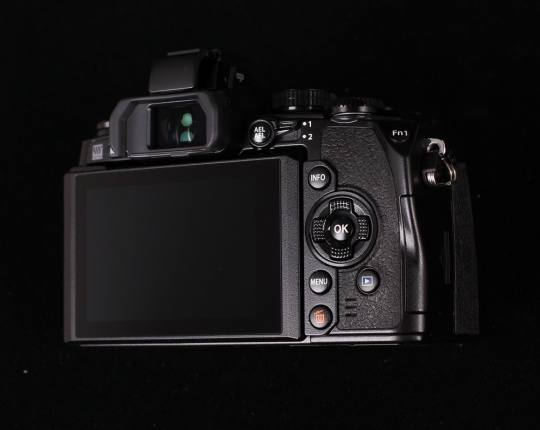 E-M1的背部采用了一块3英寸的高分辨率翻转屏幕。能够带来特别细腻的图像显示效果。用户无论是查看图片还是确认对焦点,都能非常轻松办到。屏幕右侧采用了常规的按钮布局,圆形的四维导航钮可以进行前后上下的参数调节,也可以进行菜单页或者回放图片的翻转。除了四维快捷钮,就是主菜单和回放删除钮,上面还有一个显示信息的选择钮。整体按键数量不多,显得简洁有序。