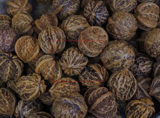 可以说E-M1的画质是给笔者惊喜的。无论是最距离拍摄小物件还是远距离拍摄风光片。把原图放大后,画面的层次和被摄体的质感都展现出来了。核桃表面的纹理或者山脚下的建筑物锐度表现的很好,画面上细微之处也能让人看清。E-M1全新的图形传感器与处理器配合的非常给力,无论是锐度还是细节刻画都让摄影师满意,即使后期进行放大制作也完全没有问题。